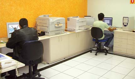 > Heidelberg SpeedMaster > Roland 200 Bicolor > Alceadeira ST 100 > Dobradeira T5 > Pré-impressão > Acabamentos